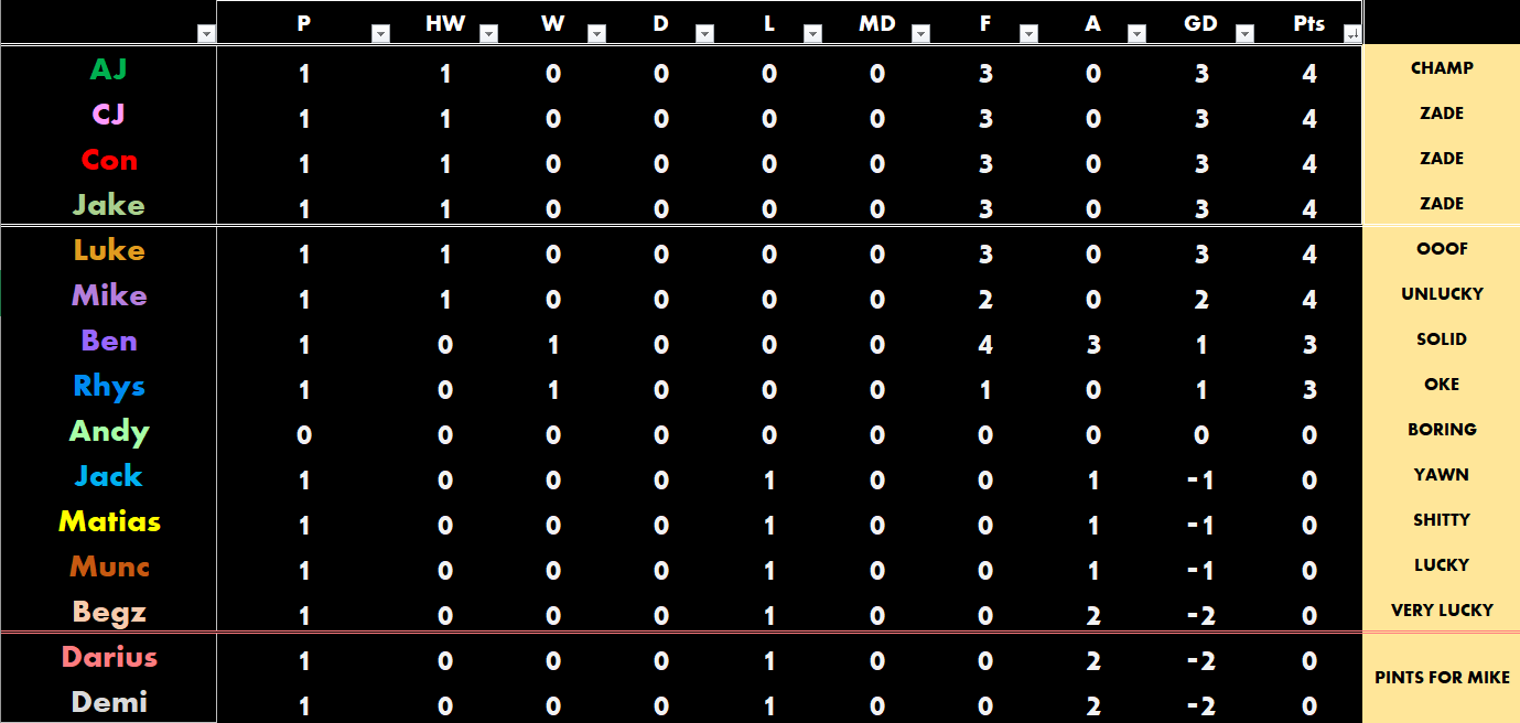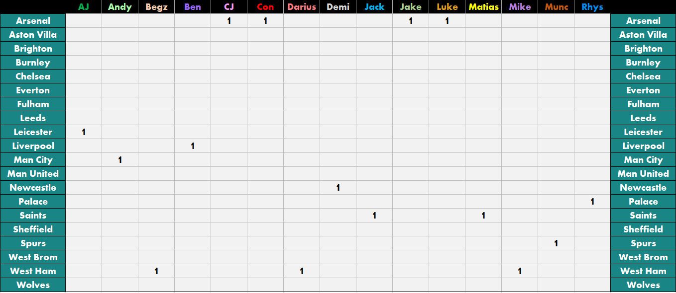September 15, 2020September 15, 2020MikeFranchettiLeave a Comment on #PLS5 GW1- Irons Suck #PLS5 GW1- Irons Suck Arsenal win! West Ham lose to Newcastle! Rhys is still sly, Mat still sucks! Courtesy of Crystal Palace, Rhys got the better of Jack again Share this: Click to share on X (Opens in new window) X Click to share on Facebook (Opens in new window) Facebook Like Loading... Related