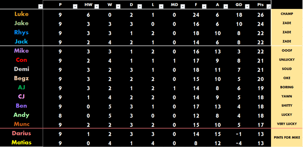 November 24, 2020May 16, 2022MikeFranchettiLeave a Comment on #PLS5 GW9 – Fluke Jankowski finally loses! #PLS5 GW9 – Fluke Jankowski finally loses! Andy still unbeaten! Here comes Jack! Muncie in danger? Share this: Click to share on X (Opens in new window) X Click to share on Facebook (Opens in new window) Facebook Like Loading... Related