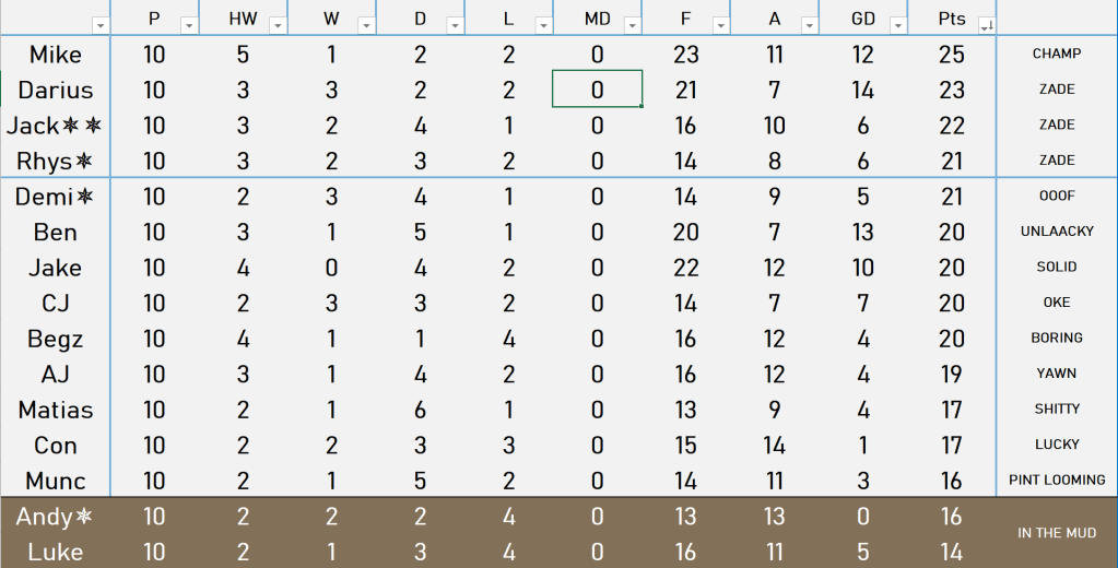 “Apologies for a mistake in last week’s table!!!”