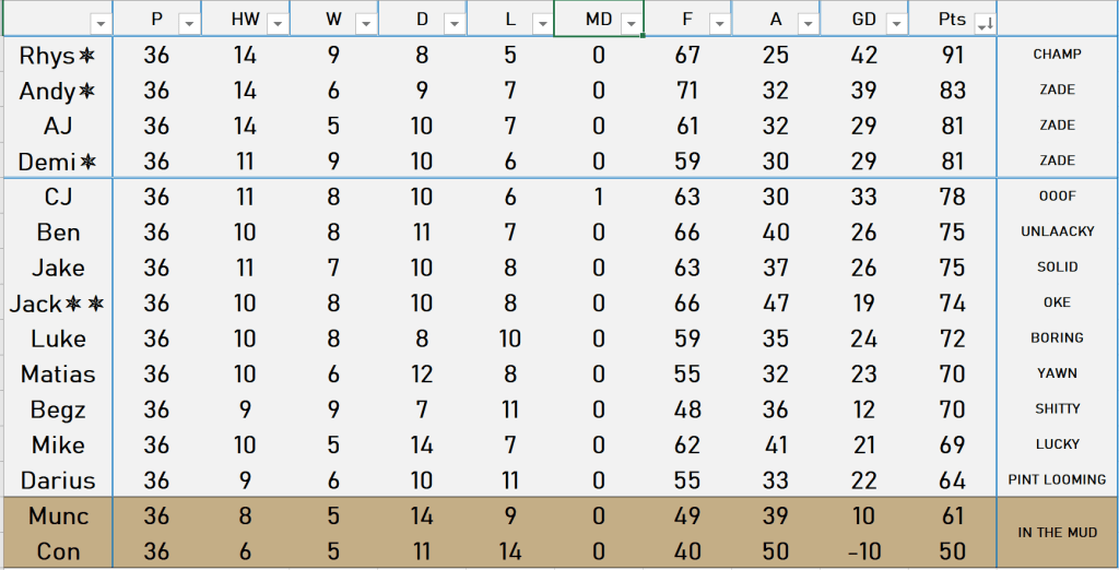 May 12, 2022May 16, 2022MikeFranchettiLeave a Comment on #PLS6 #GW36 – Miracles Needed! #PLS6 #GW36 – Miracles Needed! Jack has fucked it! Is Muncie alive?! Share this: Click to share on X (Opens in new window) X Click to share on Facebook (Opens in new window) Facebook Like Loading... Related