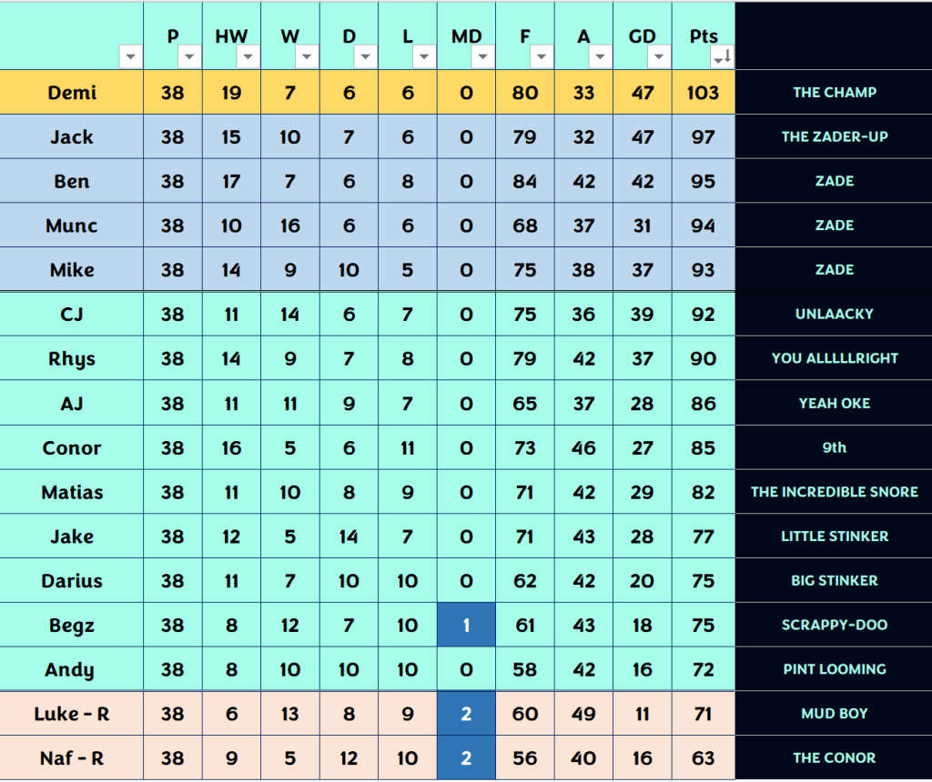 May 27, 2025MikeFranchettiLeave a Comment on #PLS9 #GW38 – Demi Again, Ole Ole #PLS9 #GW38 – Demi Again, Ole Ole Champ – Demi2nd – JackieApology video – The JankowskisNeck a pint – The Jankowskis Share this: Click to share on X (Opens in new window) X Click to share on Facebook (Opens in new window) Facebook Like Loading... Related