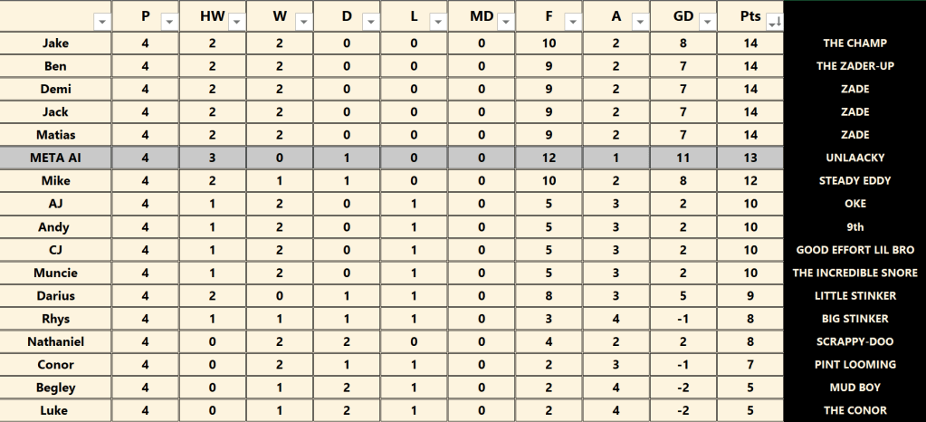 September 17, 2025MikeFranchettiLeave a Comment on #PLS10 #GW4 – Chillout Jake #PLS10 #GW4 – Chillout Jake Share this: Click to share on X (Opens in new window) X Click to share on Facebook (Opens in new window) Facebook Like Loading... Related