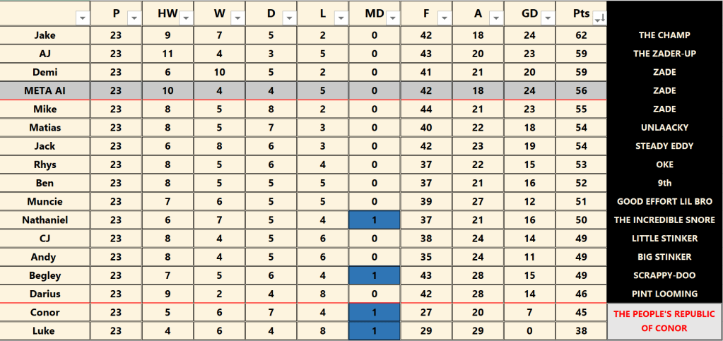January 26, 2026MikeFranchettiLeave a Comment on #PLS10 #GW23 – Jack is NOT back, AJ does NOT cling on. Mike says Hey! #PLS10 #GW23 – Jack is NOT back, AJ does NOT cling on. Mike says Hey! Share this: Share on X (Opens in new window) X Share on Facebook (Opens in new window) Facebook Like Loading... Related